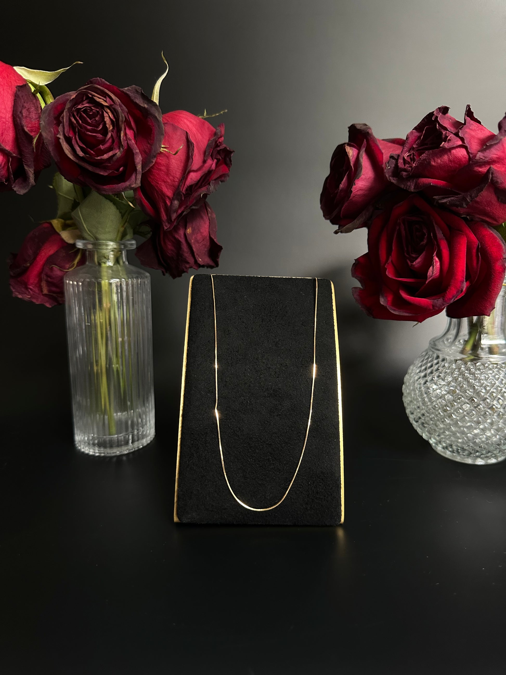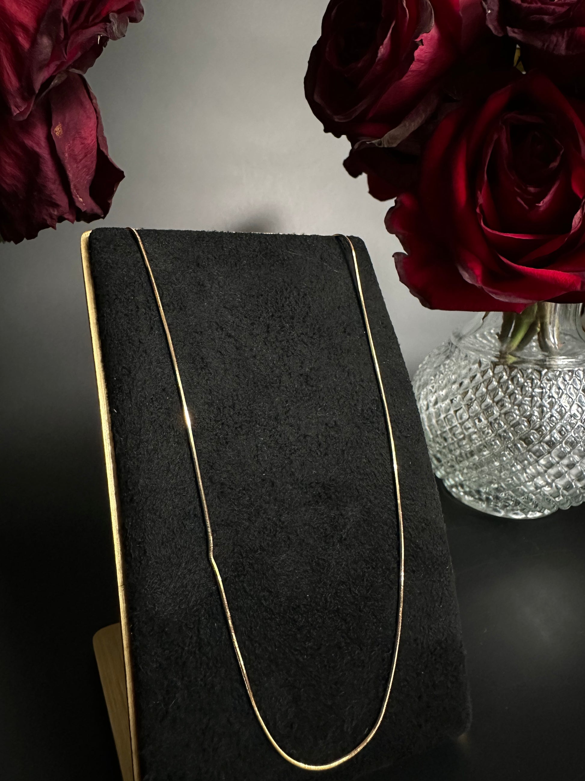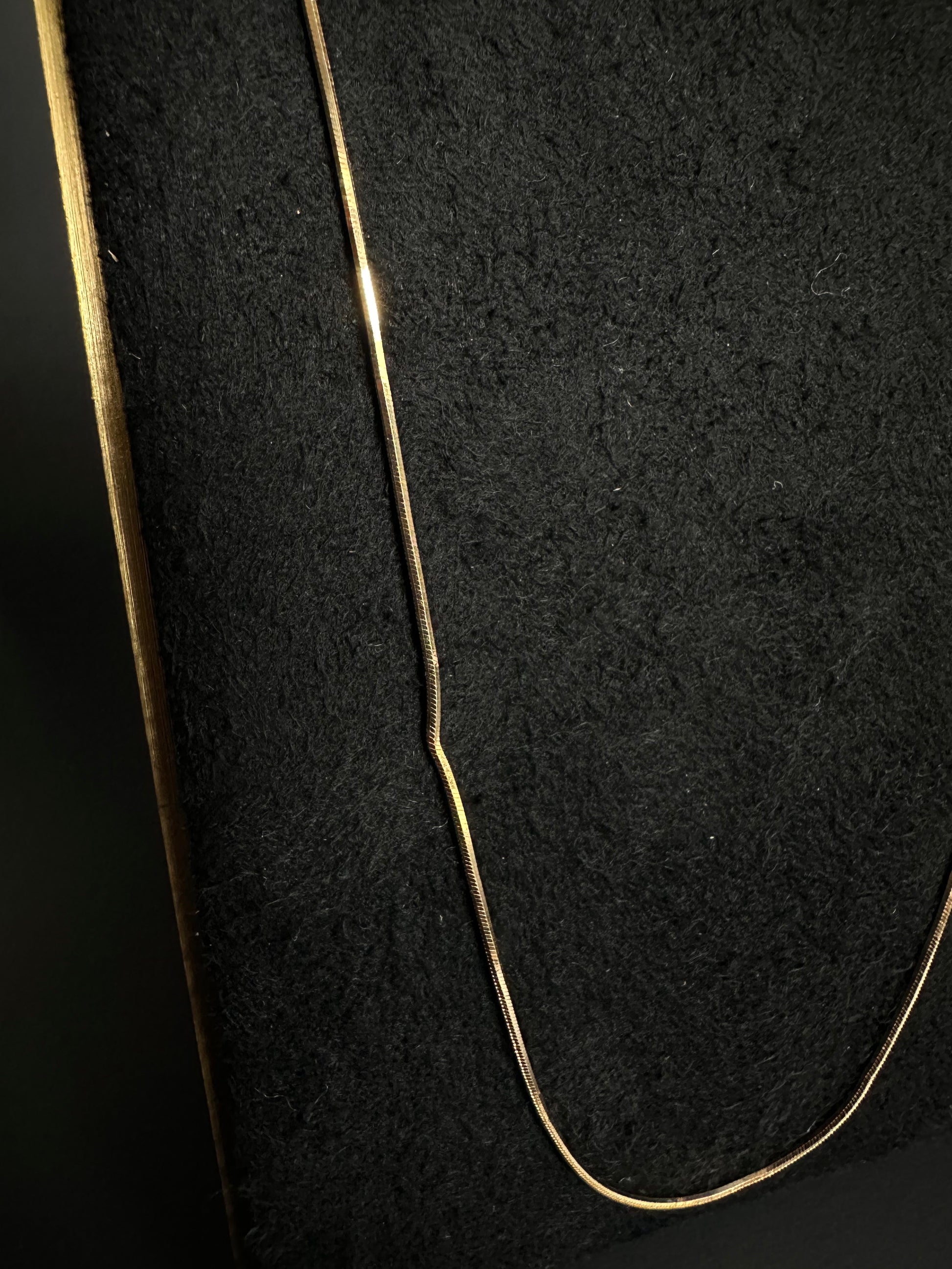 18" 1mm boa snake chain in 14k yellow gold with lobster clasp (NOTE: small kink in chain, discount reflected in price)