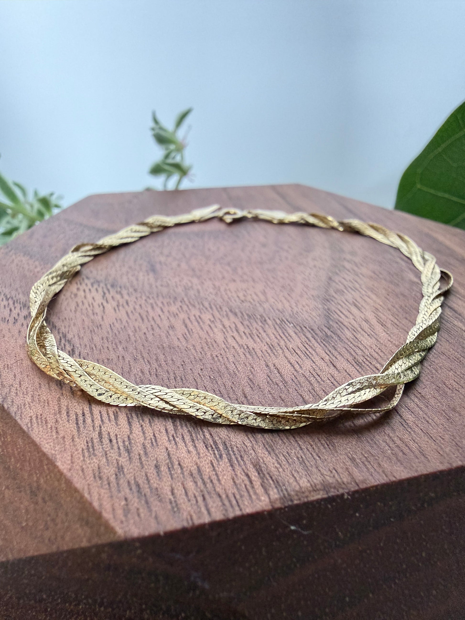 14kt yellow gold triple twisted herringbone chain bracelet, 2.7mm thick, 7" long, with spring ring clasp