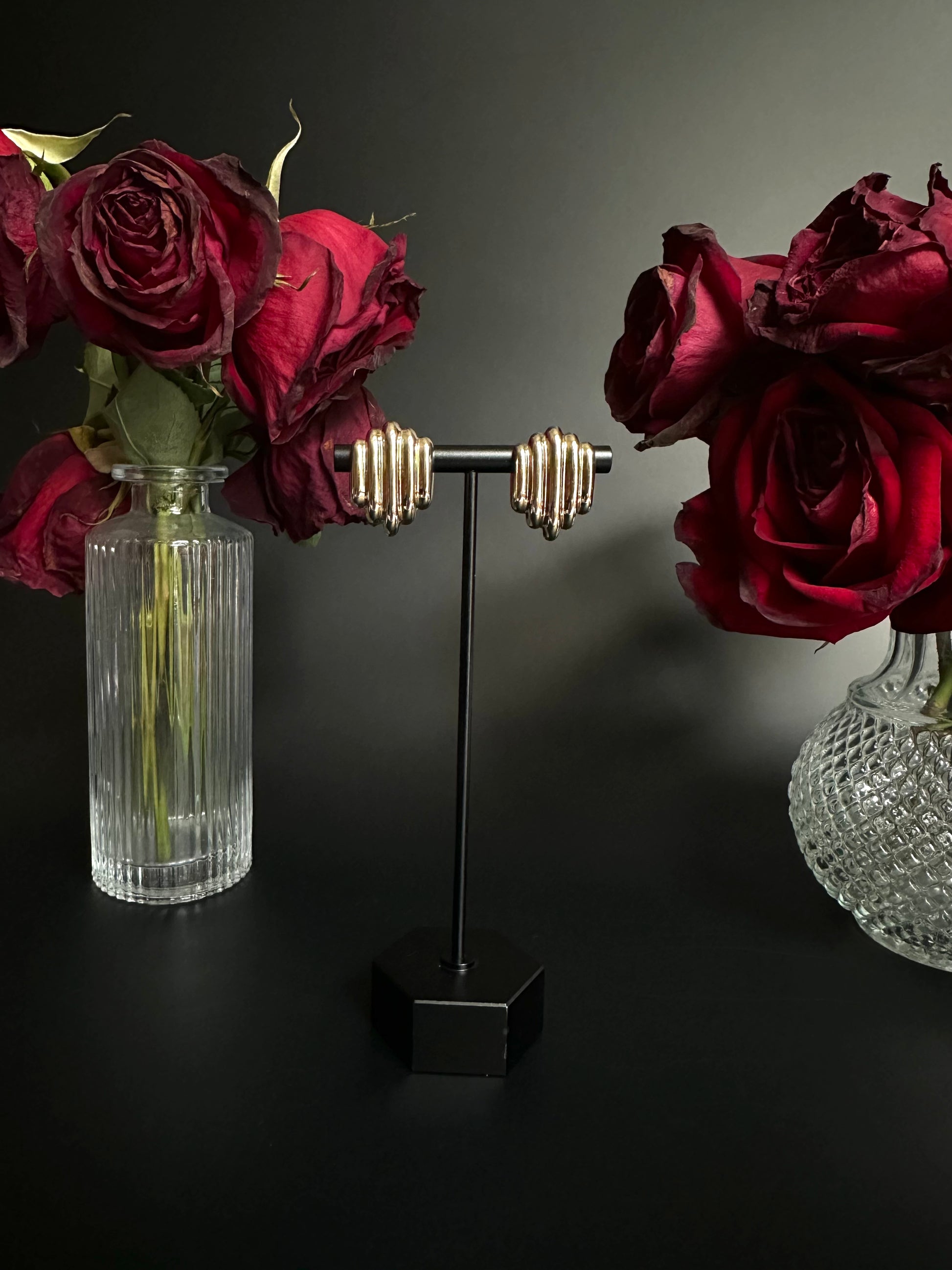 14kt Yellow gold post stud earrings featuring a vintage line design (like a spell book, perhaps??), 24.4mm in length